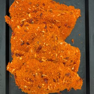 Ingredienten: varkensvlees met ham en kaas. tarwe (gluten), koemelk (melk), zout, zuursel (melk), rogge (gluten), dierlijk stremsel, nitrietpekelzout, e251, caroteen, maltodextrine, peterselie, drinkwater, glucosestroop, e450/e451, paprika concentraat, e300, e631 en e627