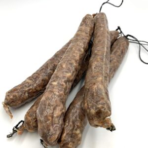 | Ingrediënten | varkensvlees, zout, conserveermiddel:, natriumnitriet, peper, wit, dextrose, keukenzout, kleurstof:, E, 120, karmijn, lavaswortel, foelie, koriander, starterculturen:, (Staphylococcus, carnosus, Lactobacillus, plantarum) |