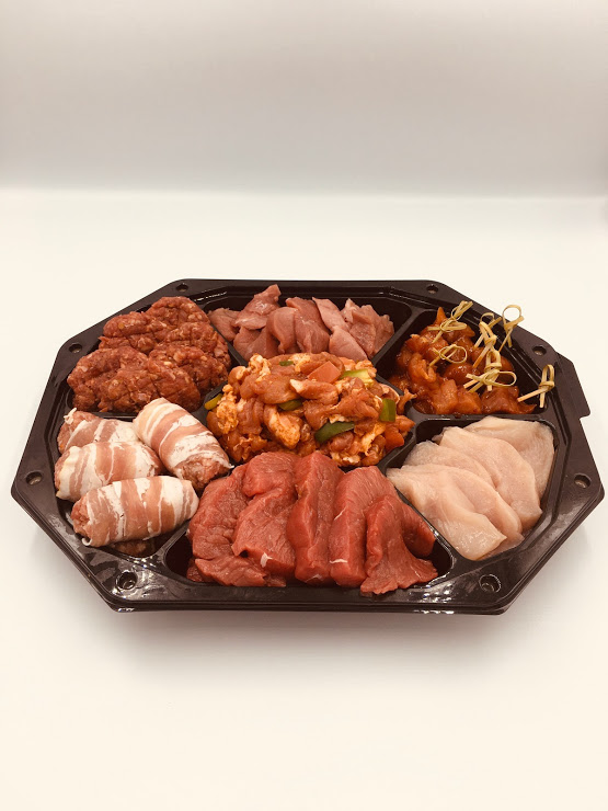 Deze schotel bevat 400 gram per persoon: Biefstuk (extra), kipfilet (extra), varkenshaas (extra), satéstokjes, shoarmavlees, hamburgers, slavinken. Kies hieronder uw gewenste aantal personen. (Prijs is per persoon).