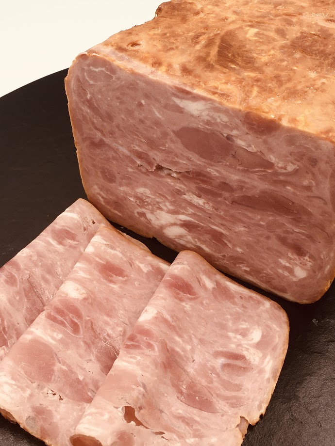Ingredienten: varkensvlees, water, stabilisator: E 450 difosfaten, glucosestroop,, keukenzout,, dextrose,, ntioxidant: E 316 natriummerythorbaat,, verdikkingsmiddel: (E 407 carrageen, E 410 johannesbroodpitmeel),, kruidenextract, zout, conserveermiddel: natriumnitriet